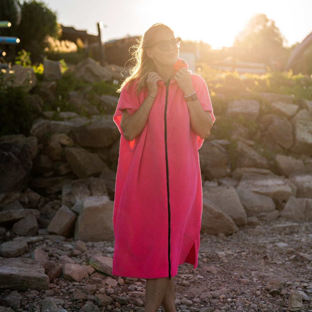 Surf pončo MONO růžová se zipem, 80 x 110 cm